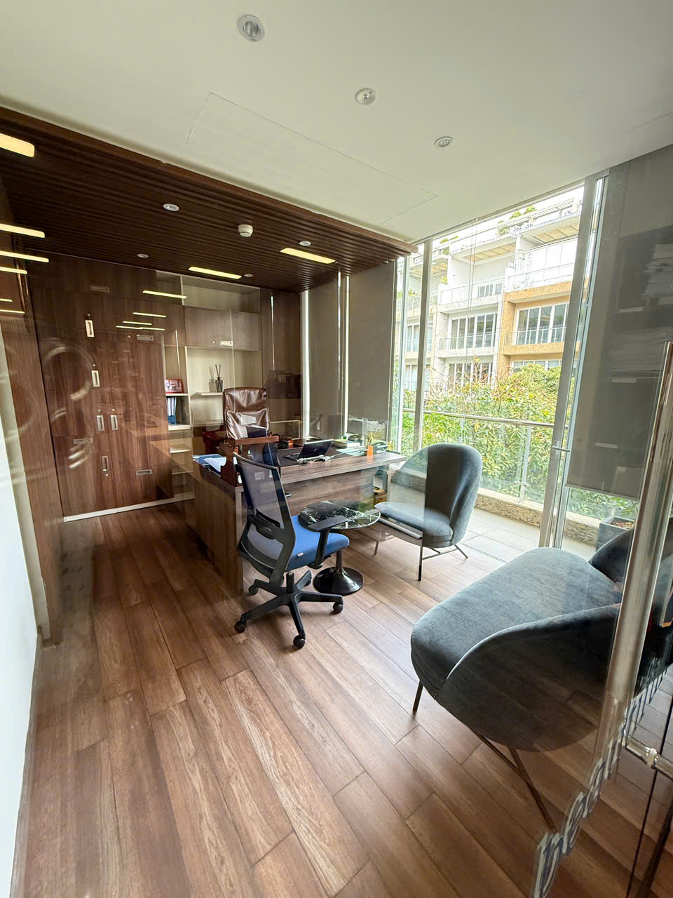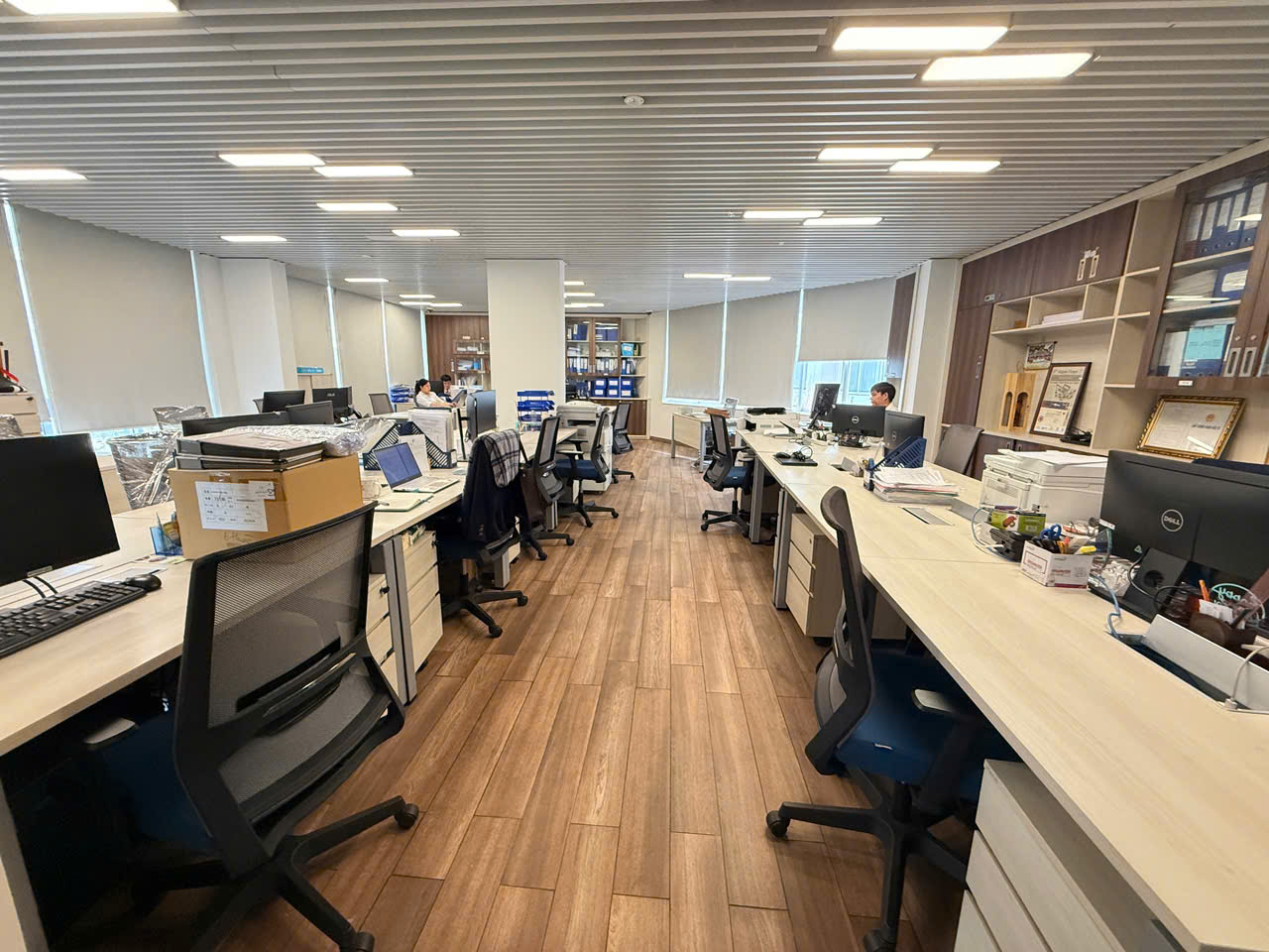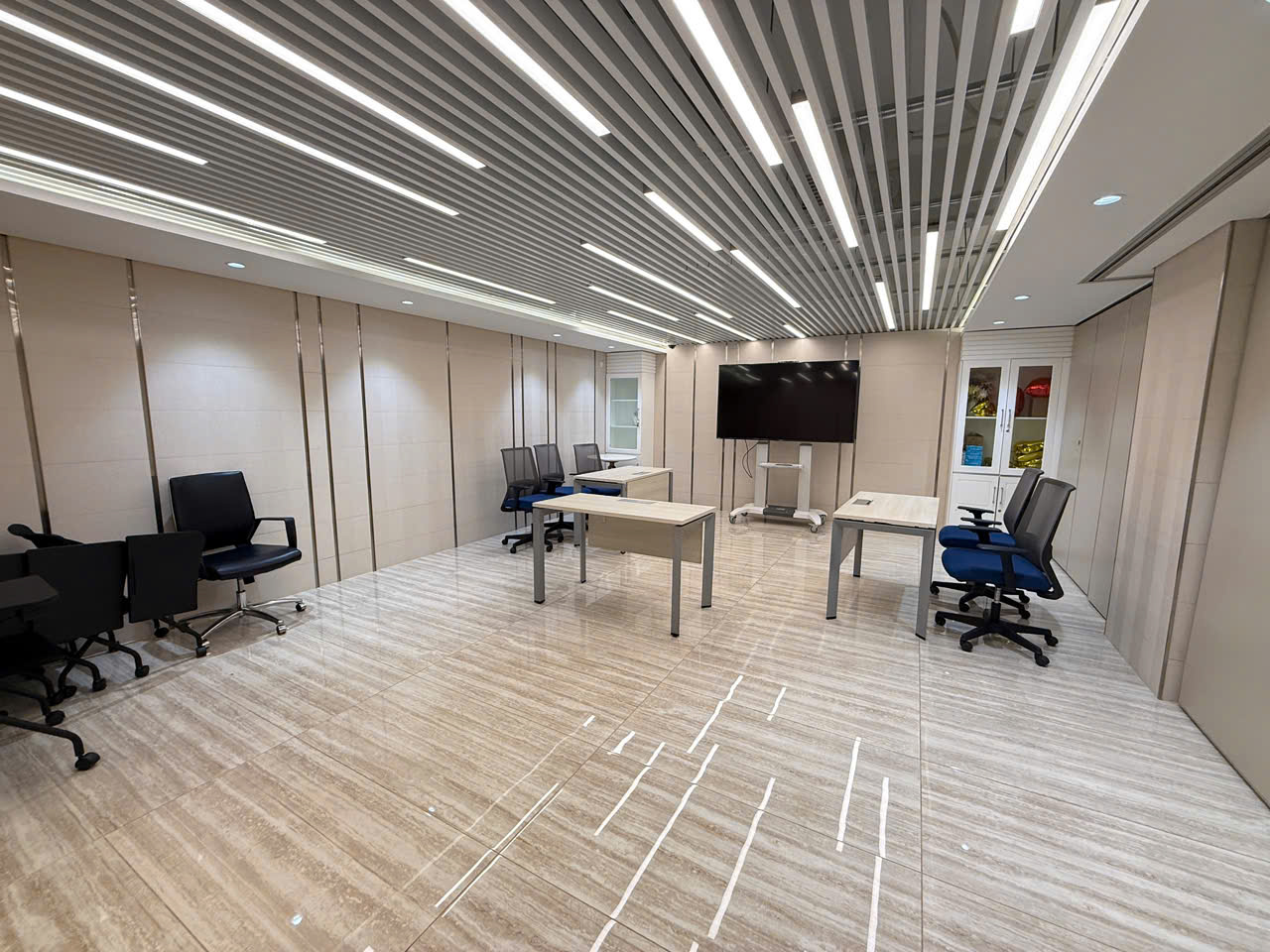 - Cho thuê sàn văn phòng hoàn thiện đã setup khu làm việc cho nhân viên, phòng giám đốc, phòng họp, ngăn phòng và setup sẵn bàn ghế