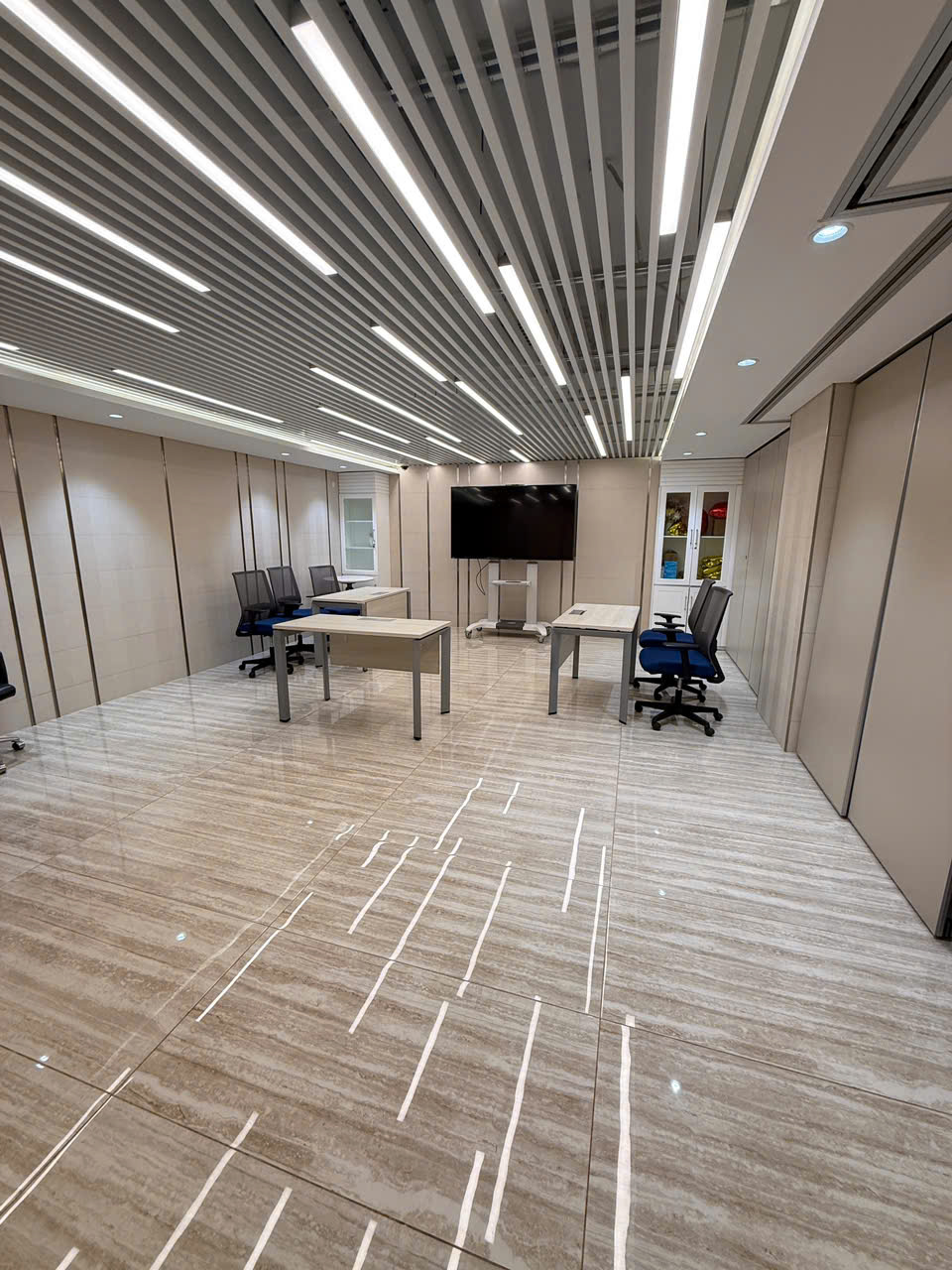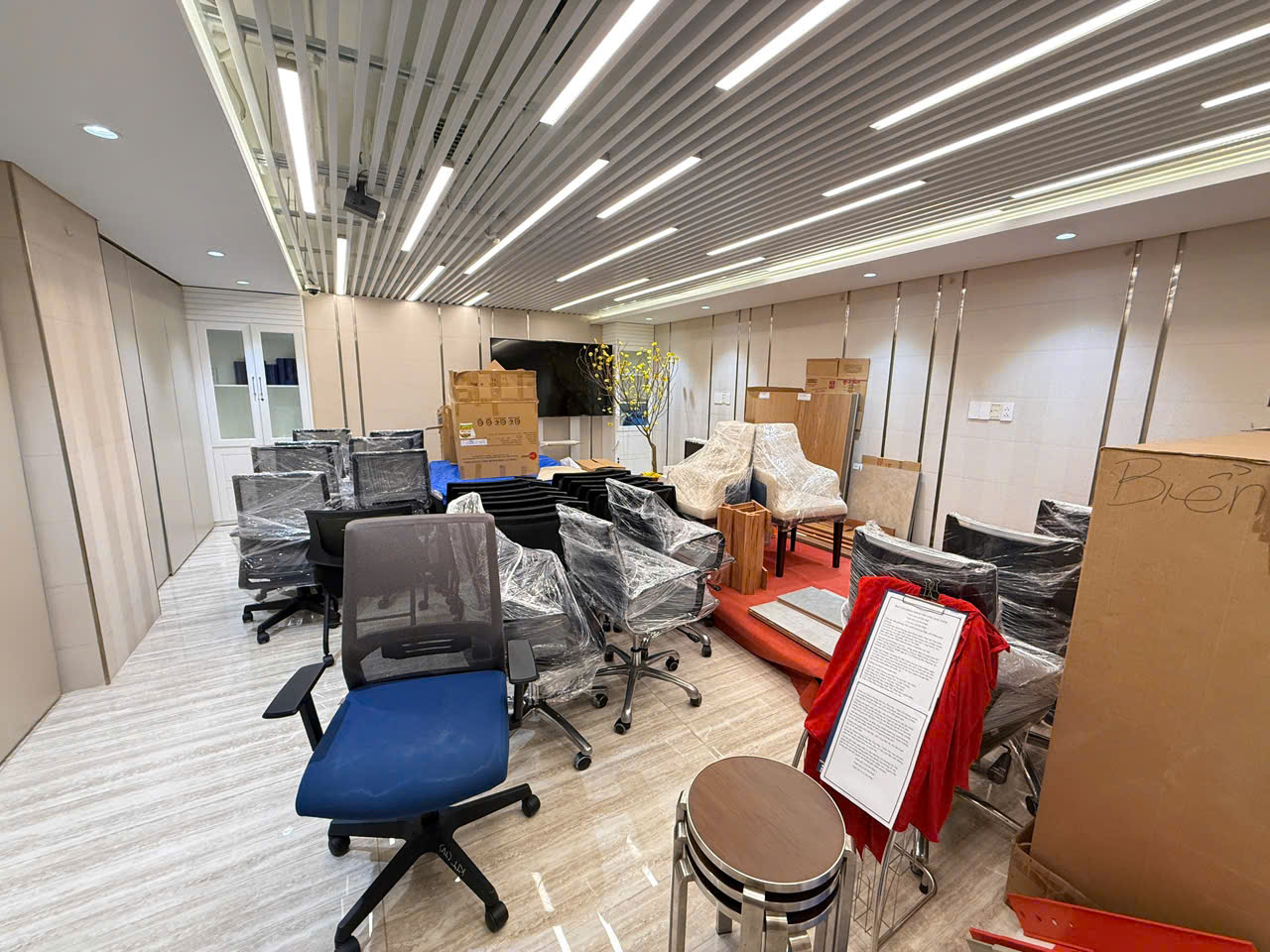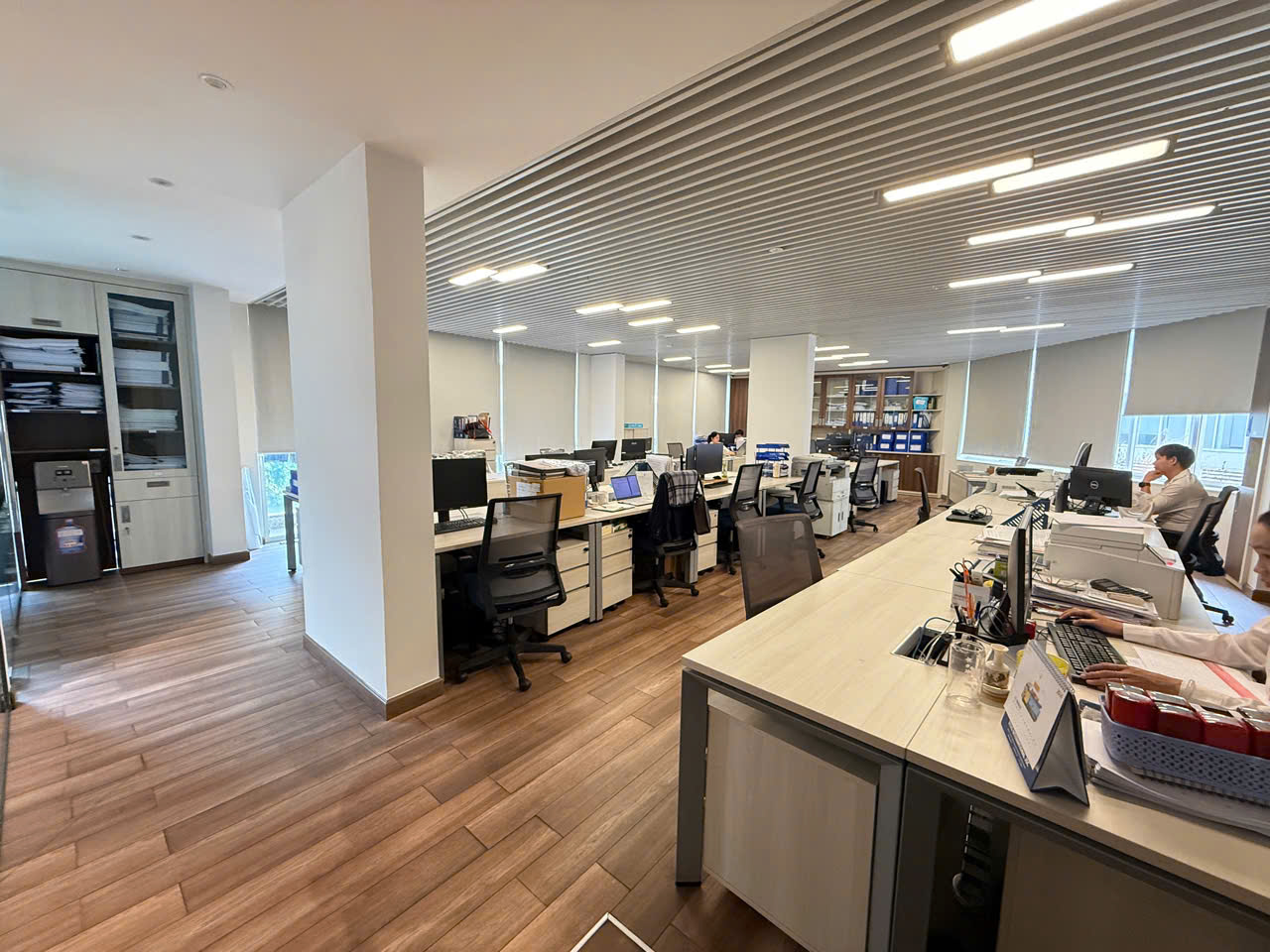 - Cho thuê sàn văn phòng hoàn thiện đã setup khu làm việc cho nhân viên, phòng giám đốc, phòng họp, ngăn phòng và setup sẵn bàn ghế